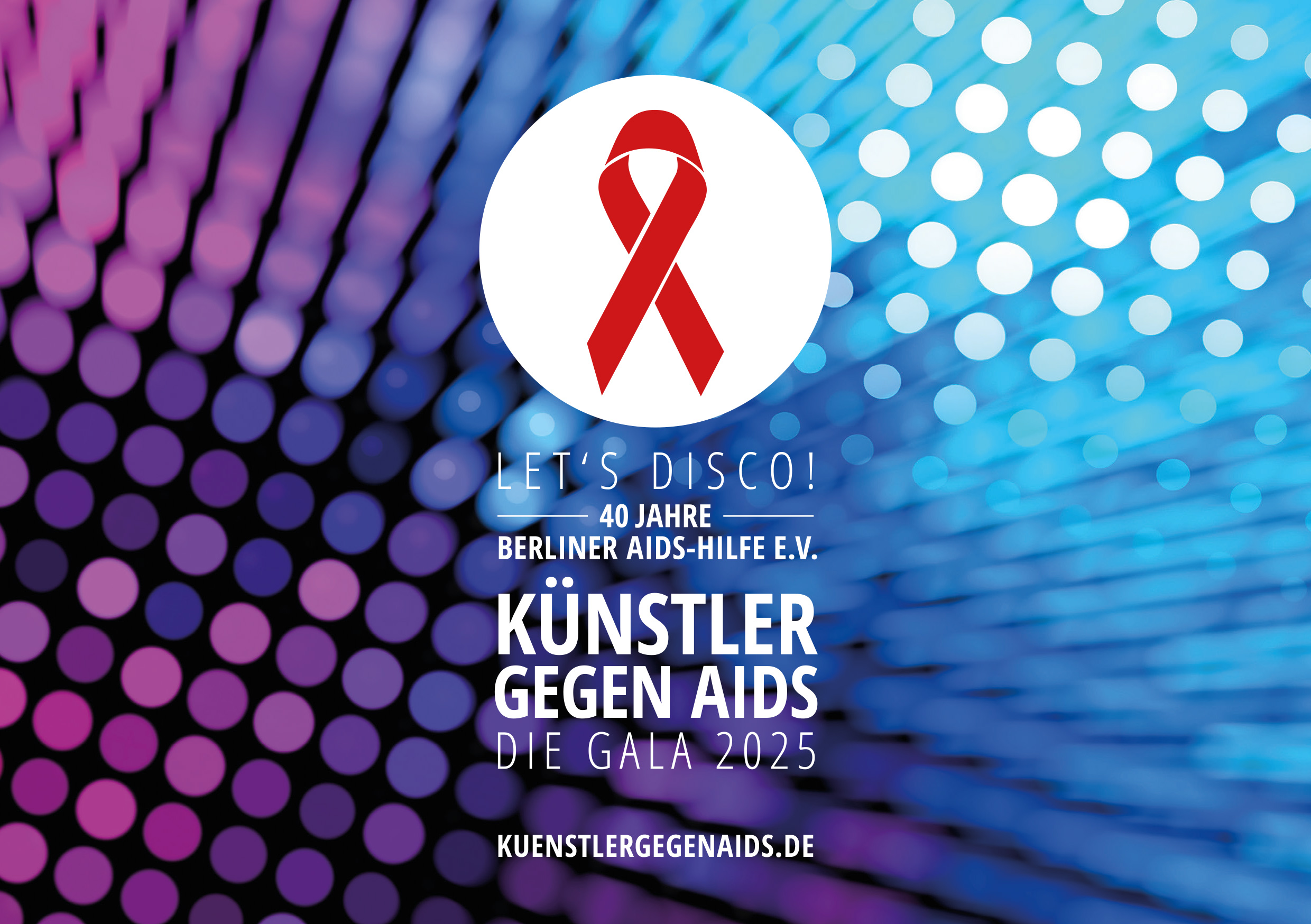 Die BERLINER AIDS-HILFE e.V. lädt im 40. JAHR IHRES BESTEHENS am 1. Dezember 2025, zugleich Welt-Aids-Tag, zur traditionellen Benefizgala KÜNSTLER GEGEN AIDS – DIE GALA 2025 in das Berliner STAGE THEATER DES WESTENS. Das Motto des Abends lautet „LET’S DISCO!“