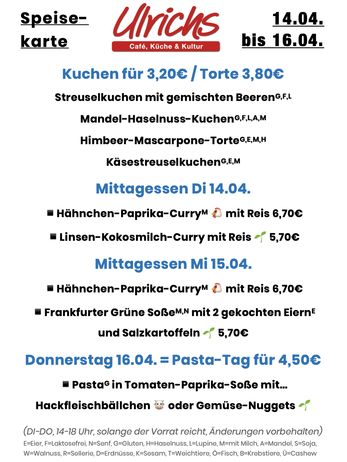 Aktuelle Informationen stets auch auf unserer Facebook-Seite: Ulrichs